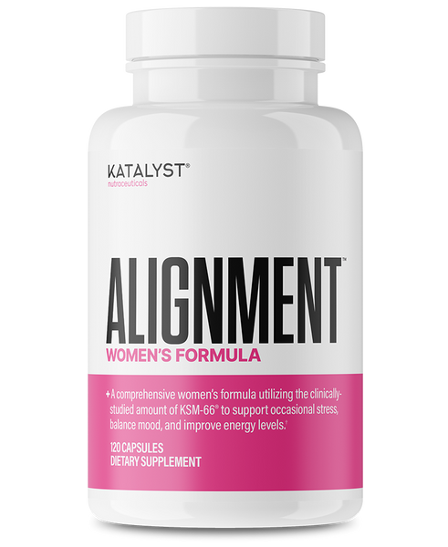 Introducing Alignment™ by Katalyst Nutraceuticals®. This ultra-comprehensive formula boasts vitamins, minerals, and other vital botanicals like the clinically-studied amount of KSM-66® Ashwagandha to help support occasional stress, balance mood, and improve energy levels. Alignment contains additional supportive nutrients like myo-inositol, DIM, chasteberry, wild yam extracts, PABA, and more.