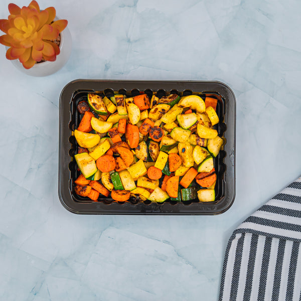 Yellow zucchini, Green zucchini and carrots mix with olive oil and Italian seasoning.